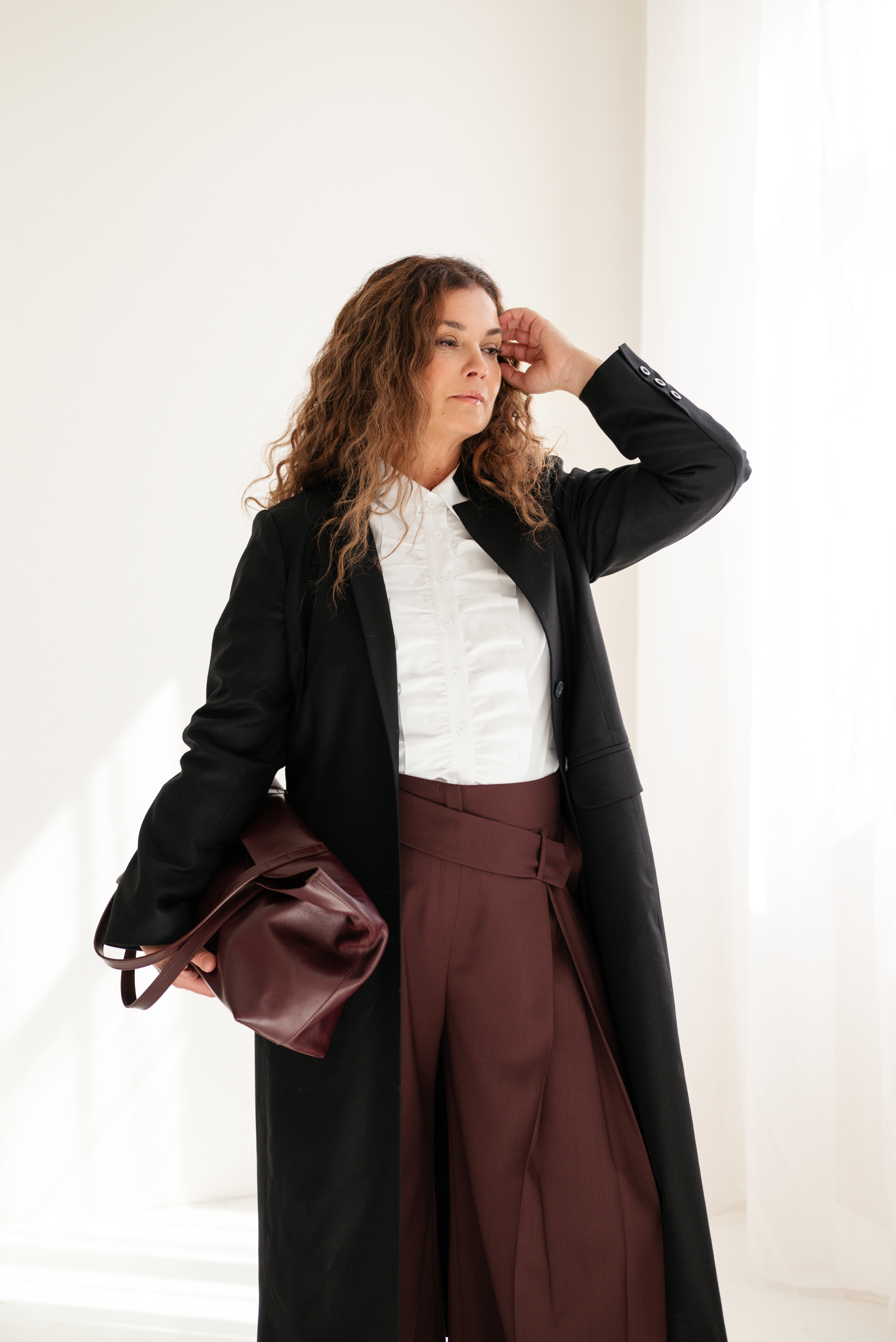 Nosit se dá překvapivě variabilně. Přes šaty do práce i na společenskou příležitost, přes kalhotový kostým, ale klidně i k džínám a jednoduchému úpletu. Právě kontrast mezi ležérními kousky a kvalitním kabátem vytváří ten nenucený, ale sebevědomý styl, který nepůsobí vykonstruovaně.