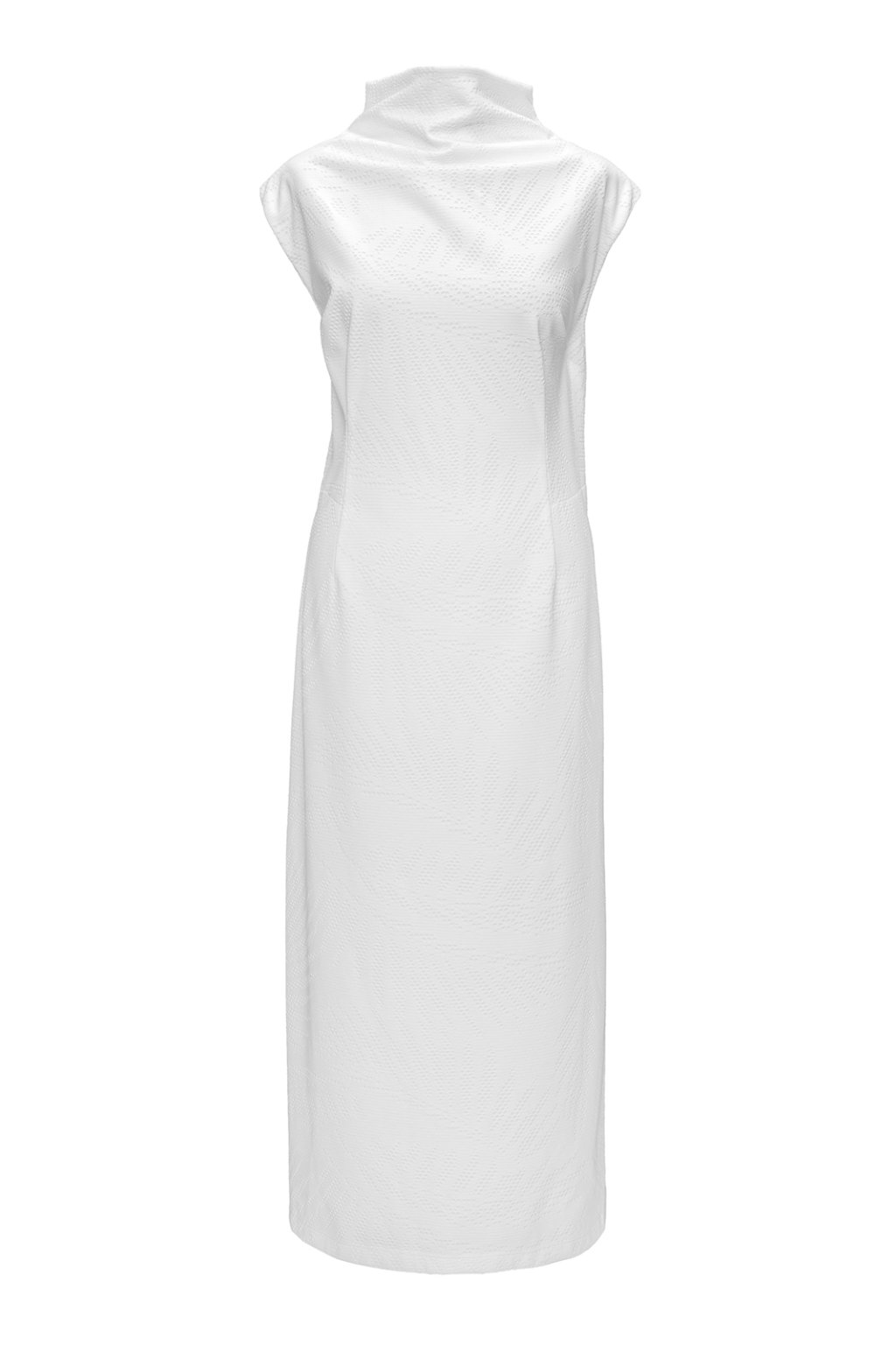 Šaty Pure Line staví na jednoduchosti a precizním střihu. Prodloužená silueta vytváří elegantní linii těla, zatímco stojáček dodává modelu kapku extravagance.