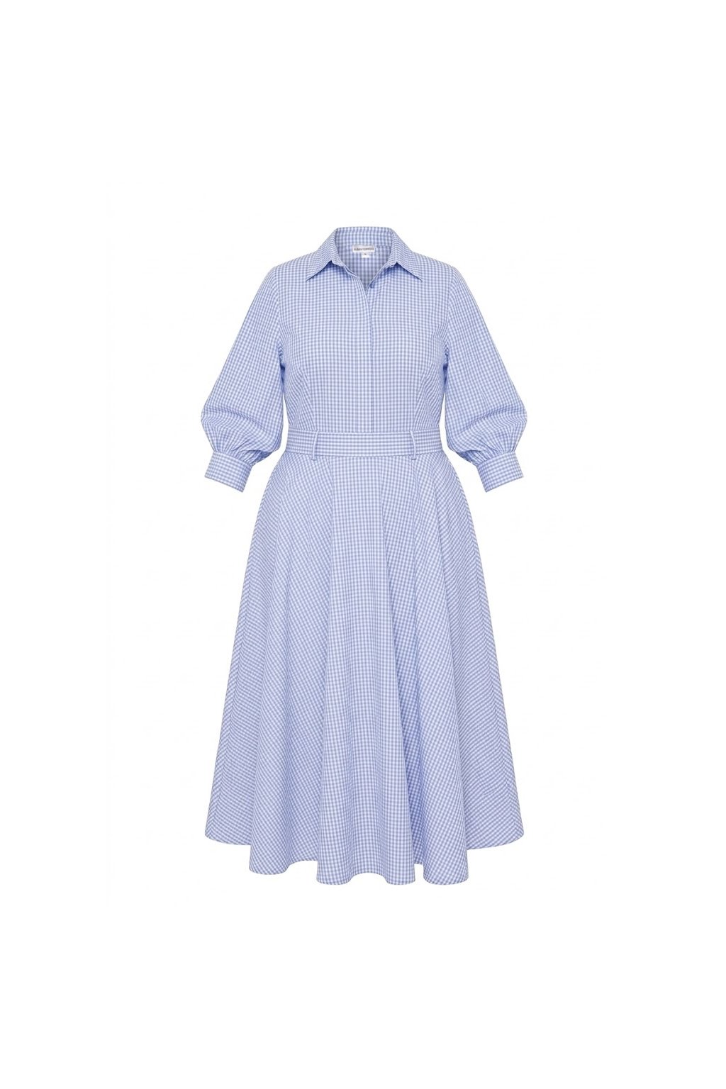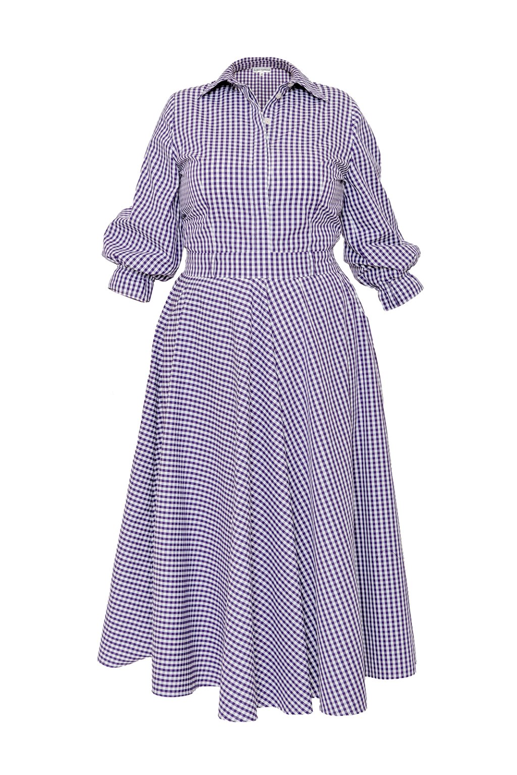 Šaty Amelia jsou postavené na klasickém košilovém střihu, který doplňuje výrazně ženská silueta. Fialovo-bílá vichy kostička dodává modelu svěží a nadčasový charakter.