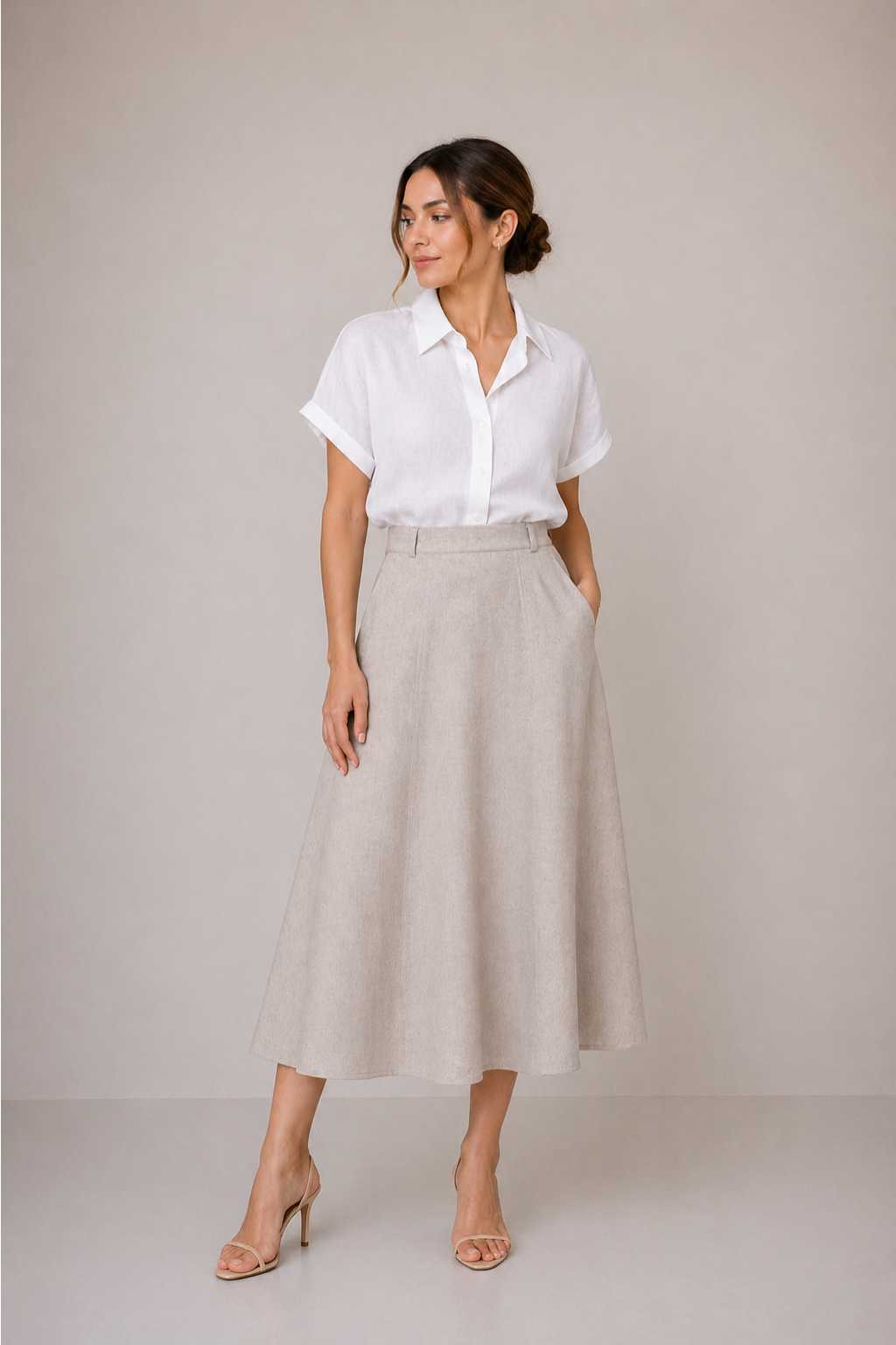 Elegantní sukně s vysokým pasem a střihem do A, který přirozeně lichotí postavě.
