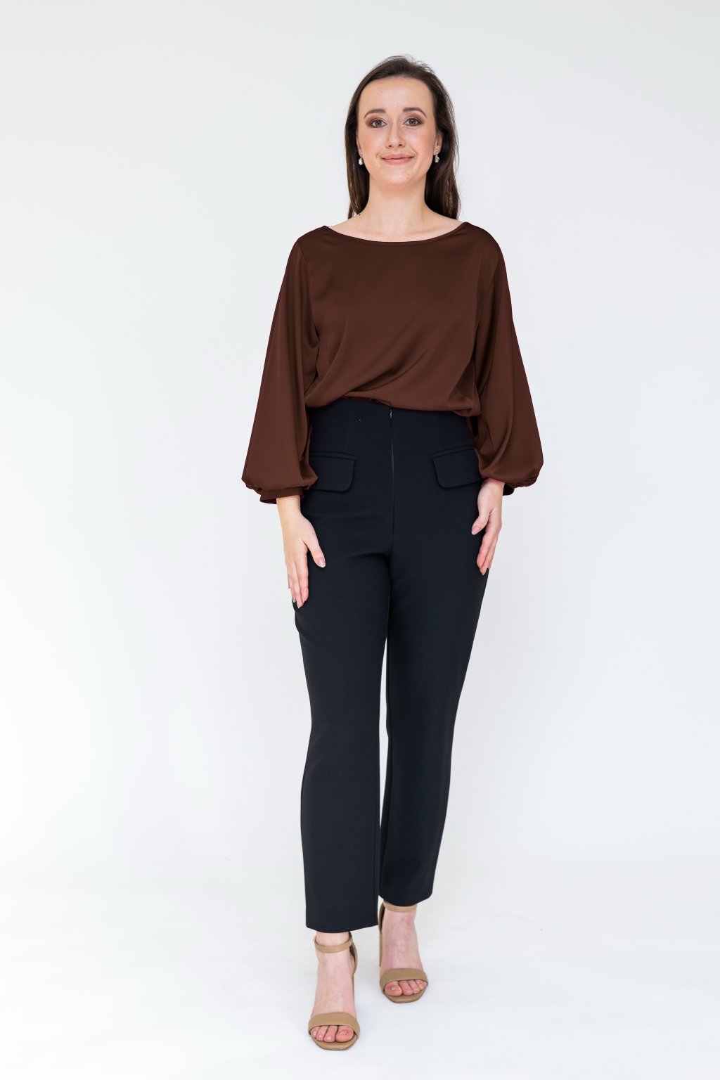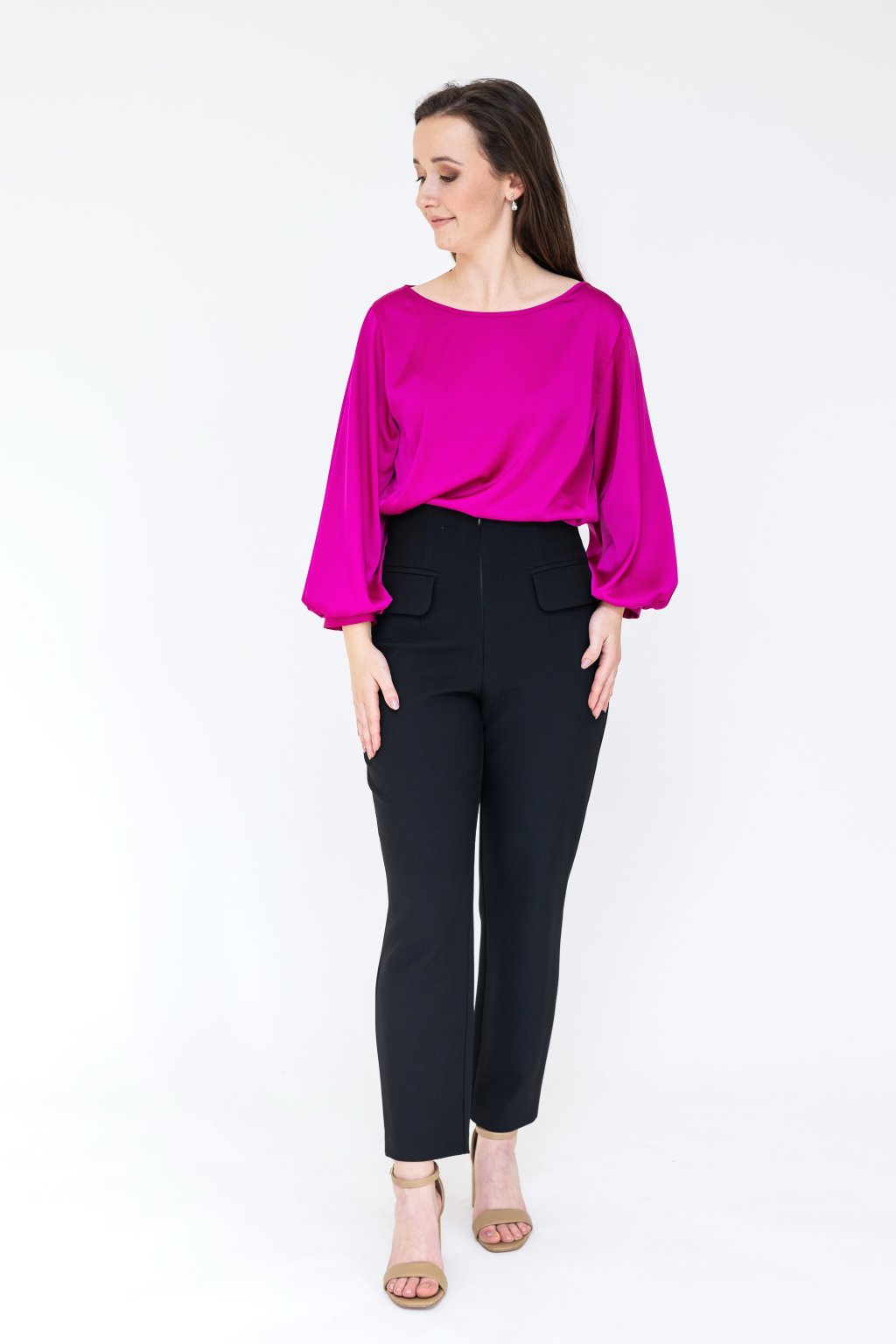 Luxusní saténová halenka, která vyniká svou elegancí a pohodlným střihem. Díky podšívce ze stejného materiálu rukávy krásně drží tvar a dodávají outfitu sofistikovaný vzhled. Halenka je ušitá z jemného, splývavého saténu, který je velmi příjemný na dotek a skvěle se přizpůsobí postavě. Ideální na společenské události, do práce i na běžné nošení. Nabízíme ji ve více než 100 nádherných odstínech, takže si vybere opravdu každý. Pro vzorník nás prosím kontaktujte TADY.