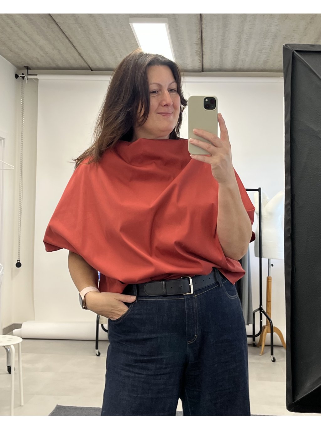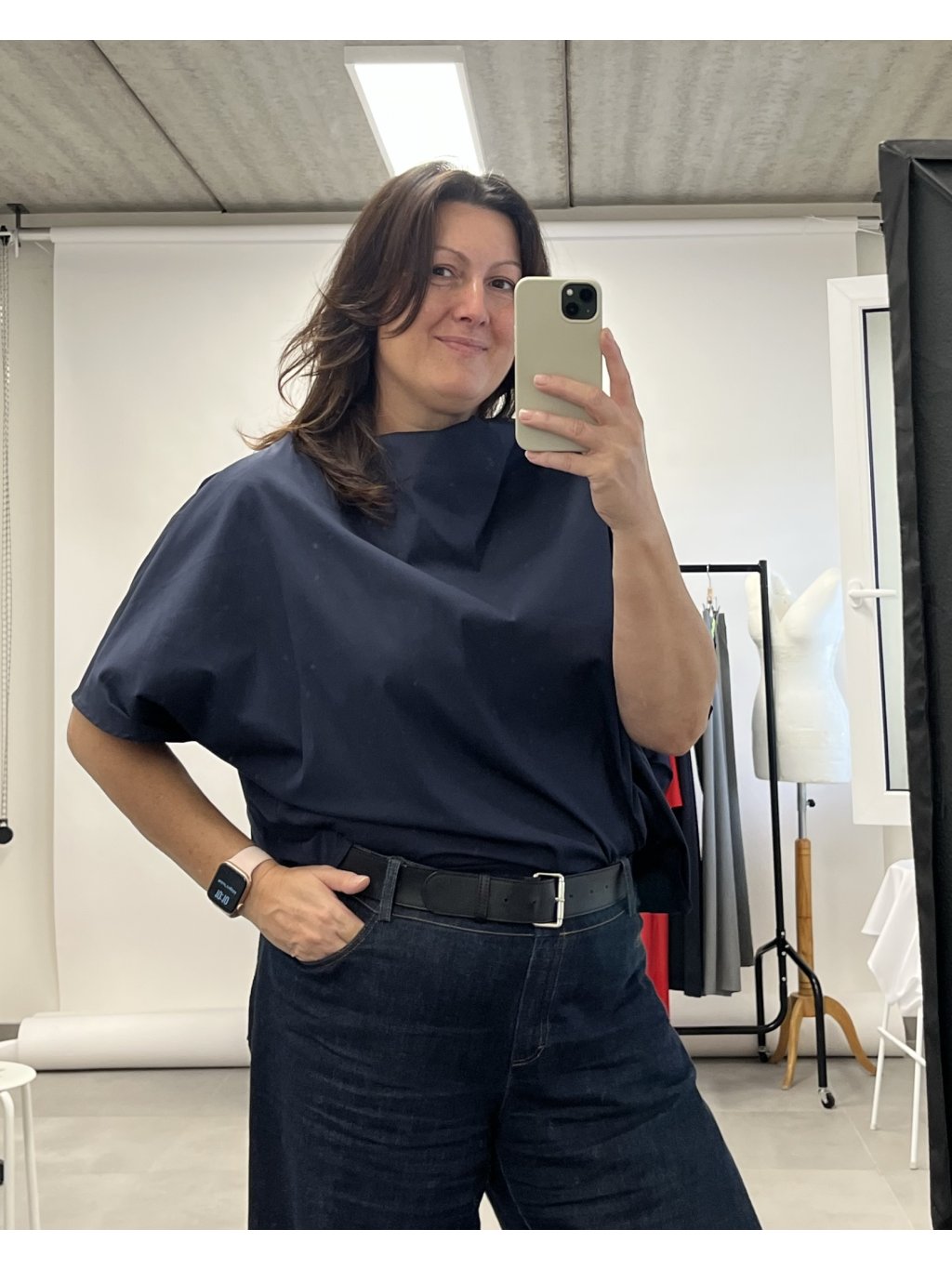 Můžete ho nosit volně spuštěný pro ležérní vzhled, nebo zakasaný do kalhot či sukně s vyšším pasem. Perfektně ladí jak s lněnými kalhotami, tak s úzkou midi sukní.