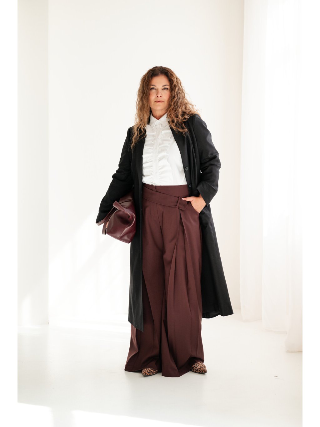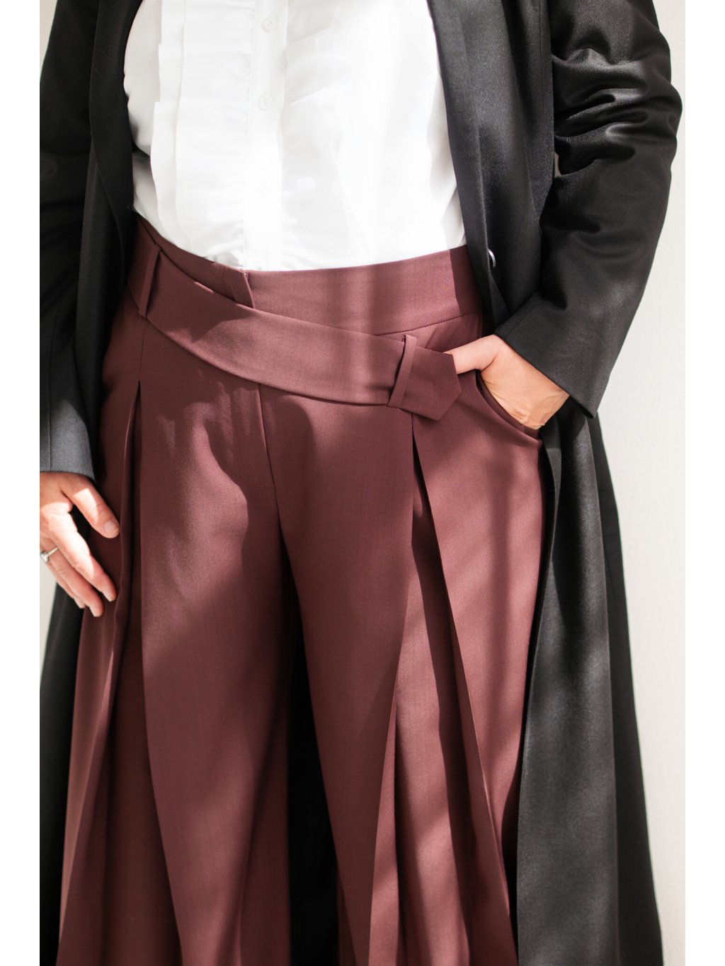 S vysokým pasem, asymetrickým páskem a rozšířeným střihem nohavic jsou nejen nesmírně pohodlné, ale zároveň i šik a moderní. K dispozici v černé a modré barvě, ale na objednání i v dalších barvách, které snadno zapadnou do každého šatníku.